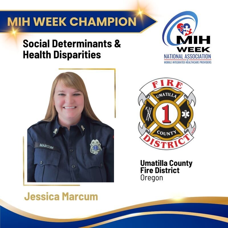 Congratulations to Jessica Marcum of the Umatilla County Fire District in Oregon! Jessica is our MIH Week Champion for Social Determinants and Health Disparities.